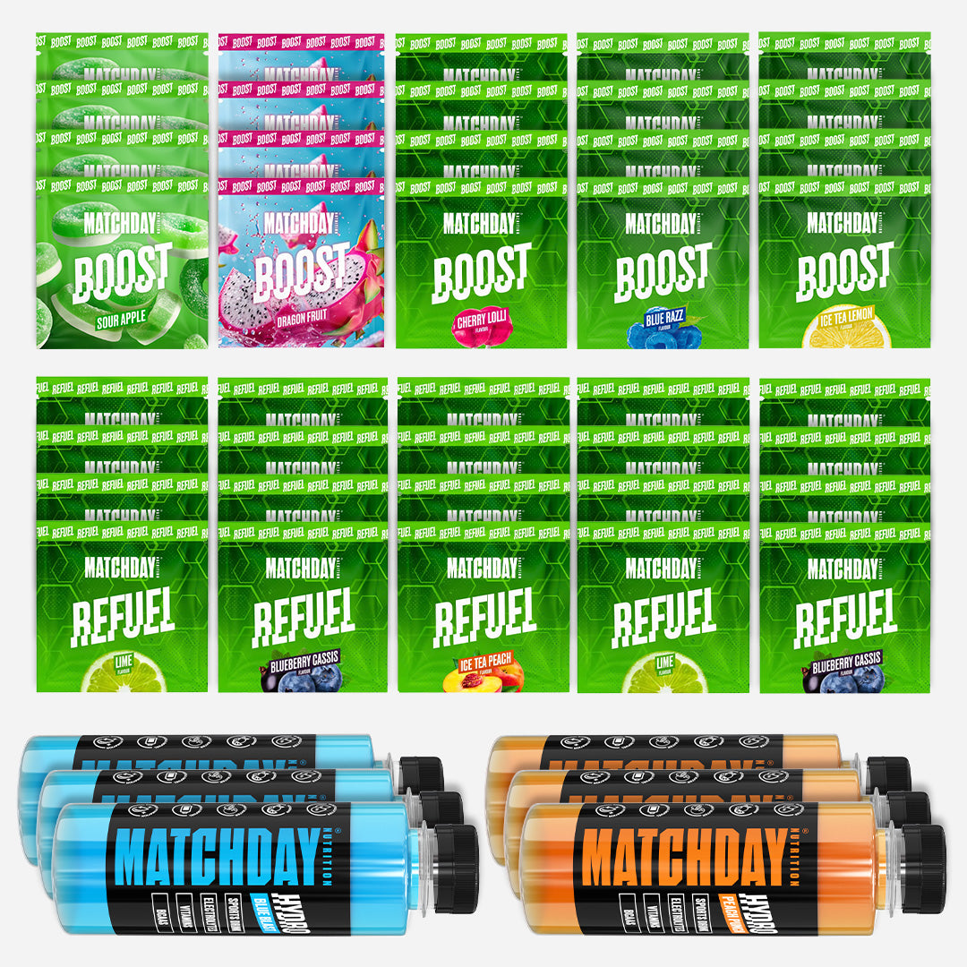 Wir setzen auf die ATP-Boost-Matrix bestehend aus D-Ribose, Beta-Alanin und Creapure®. Der Boost lässt deine Muskulatur später ermüden und verbessert den Nährstofftransport. So bist du länger belastbar und hast Kraft für Sprints und Pässe.